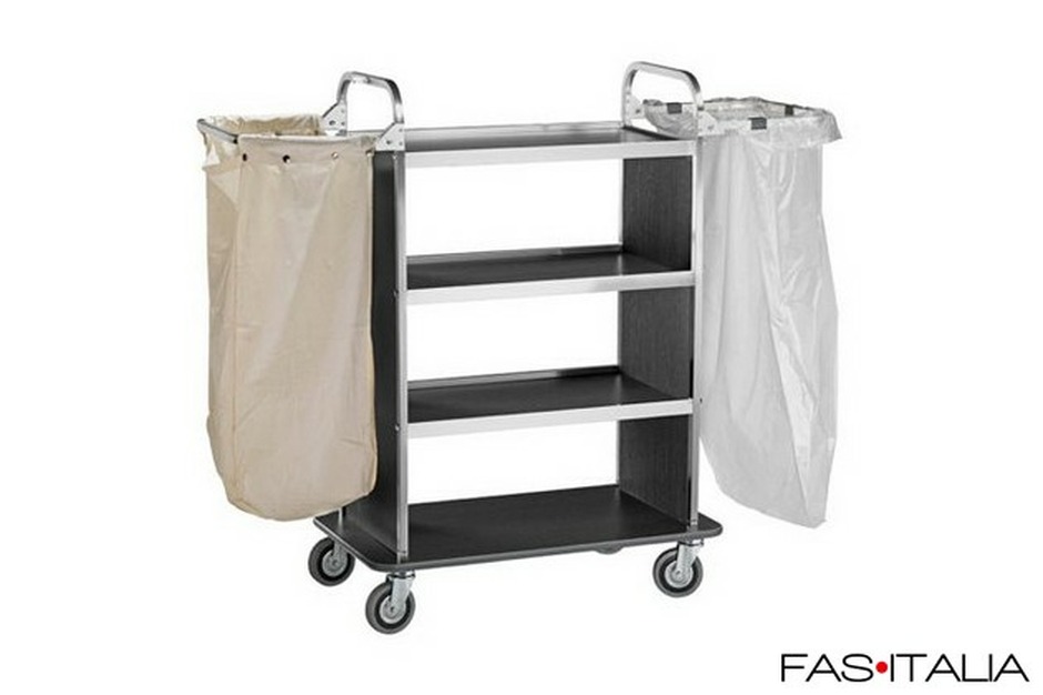 È progettato per contenere comodamente la biancheria d'hotel e tutto il necessario per il servizio ai piani.